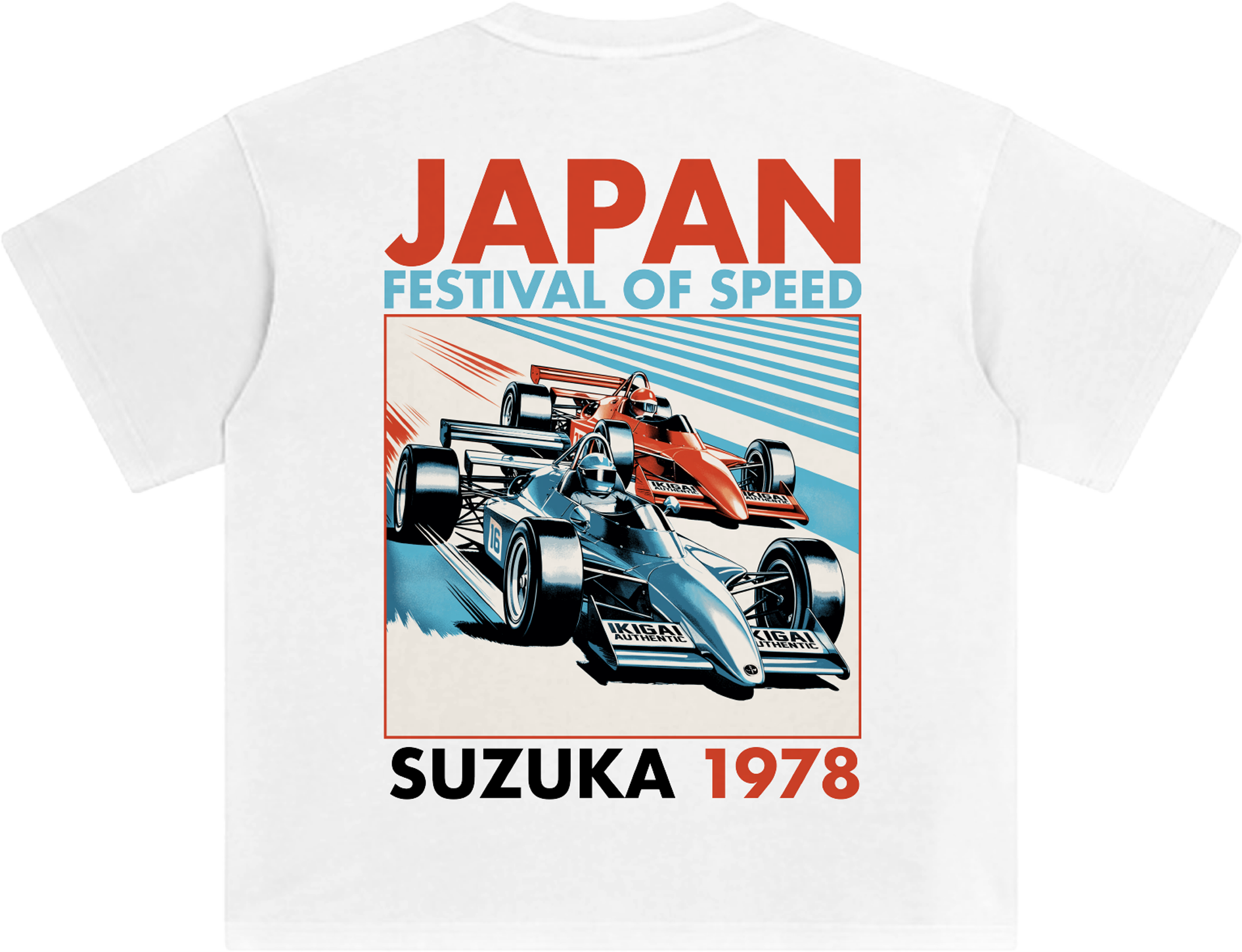 Channel vintage race vibes with our Japan Festival of Speed Tee, featuring retro-inspired Formula cars and bold Suzuka 1978 graphics. This standout piece is perfect for motorsport fans and streetwear collectors alike. Crafted from soft, premium cotton for all-day comfort.