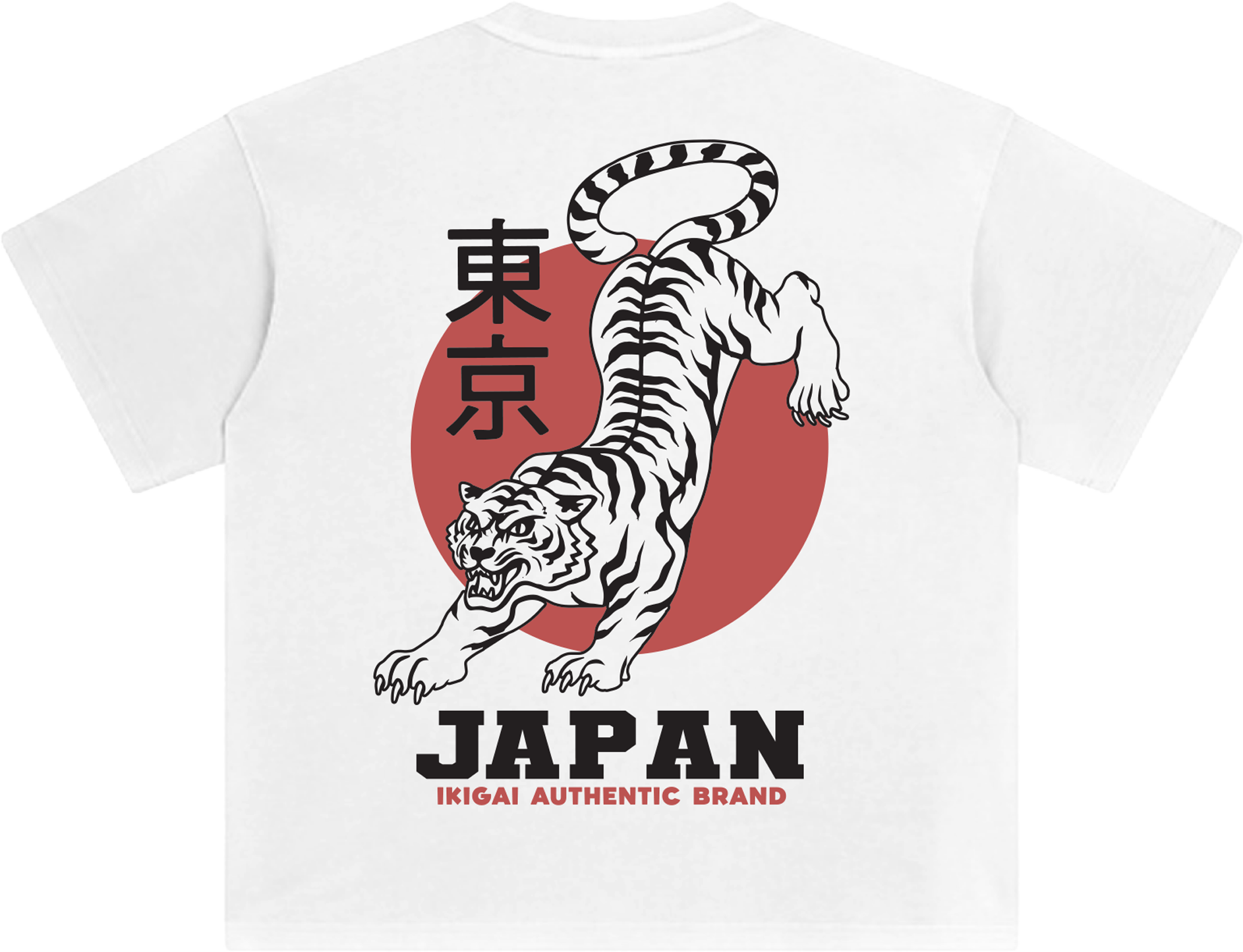Stand out with this bold Tokyo Tiger Graphic Tee, featuring a striking hand-drawn tiger over a red sun and Japanese kanji. Crafted from premium cotton for all-day comfort, it blends streetwear edge with classic Japanese art. Finished with iconic "JAPAN" varsity lettering and our Ikigai Authentic Brand mark.